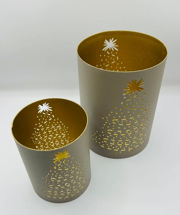 De verfijnde uitsnijdingen in de vorm van een kerstboom laten het kaarslicht prachtig doorschijnen en zorgen voor een zacht, sfeervol lichtspel.