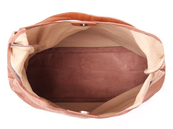 De grote shoulderbag heeft een luxe, suède-achtige uitstraling en een elegante, moderne vorm die supercomfortabel draagt.